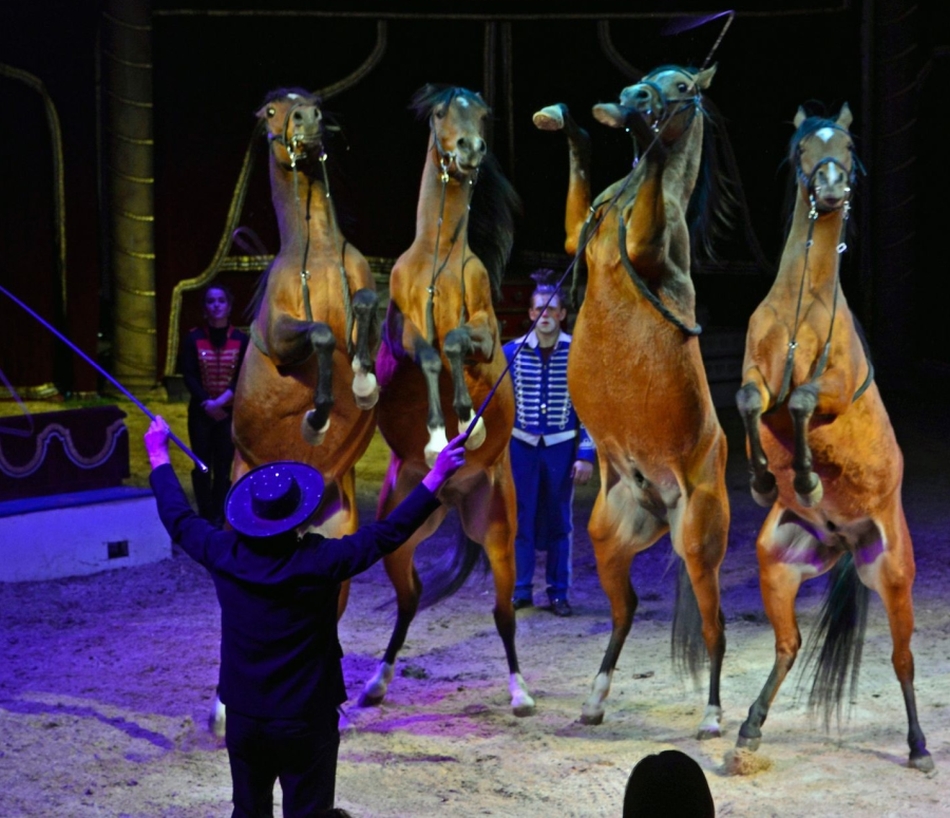 Freiheitsdressuren mit Pferden, Kamelen und Lamas